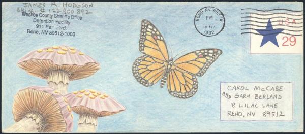 Postal Stationery Envelopes, each with full front hand drawn colour illustrations with Las Vegas & Reno 1992-3 cancels; addr locally. Depict Stonehenge, Monarch Butterfly, Mushrooms & Roses. F-VF. Beautiful (Image)