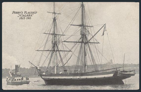 lot of 4 diff b/w postcards from 1913 depicting ADMIRAL PERRY'S FLAGSHIP "NIAGARA" from the War of 1812. The ship was sunk in 1820 but was raised in 1913 and rebuilt for the 1813-1913 Centennial celebrations of the Battle of Lake Erie. Each postcard