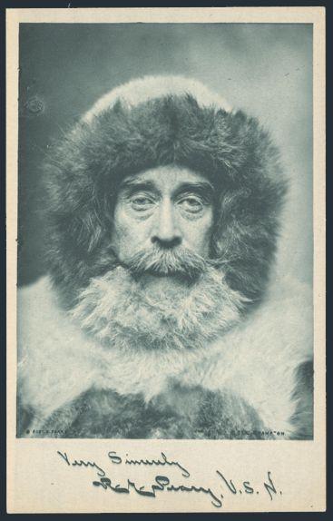 postcard circa 1909 depicting famous Arctic Explorer ROBERT PEARY with his printed signature. He made several expeditions to the Arctic in the late 19th & early 20th Centuries. VF (Image)