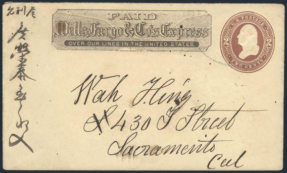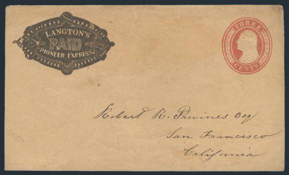 Washington Postal Stationery envelope with "LANGTON'S / PAID / PIONEER EXPRESS" imprint circa 1850's. Addr to San Francisco (no postal markings). F. Scarce (Image)