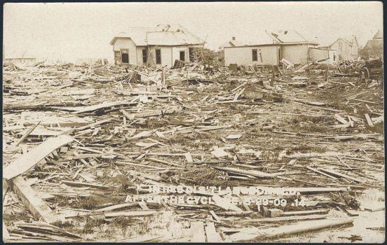 b/w real photo postcards showing wrecked buildings following a 1909 CYCLONE IN LANGDON NORTH DAKOTA. F. Scarce (Image)