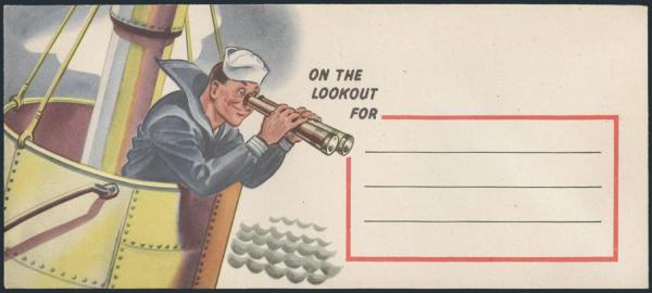 #10 WWII colour illustrated Patriotic covers. Depicts sailors aboard warship, one peering through binoculars; the other carrying mop & bucket. VF (Image)