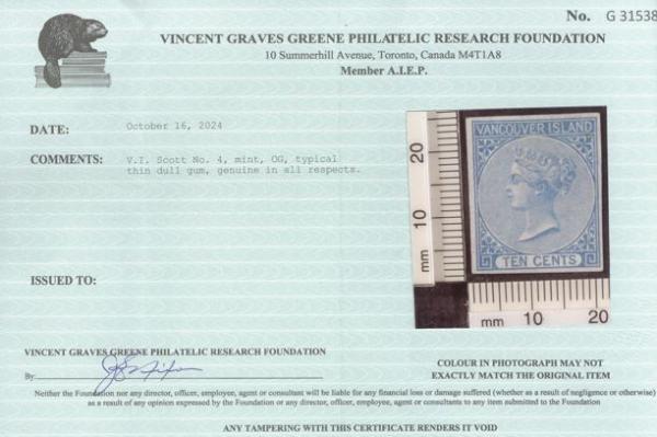 mint QV 10¢ Imperforate, four margins, crisp fresh colour, VF, OG. Has 2024 Greene Foundation Certificate. AN OUTSTANDING EXAMPLE (Image) (View Certificate)