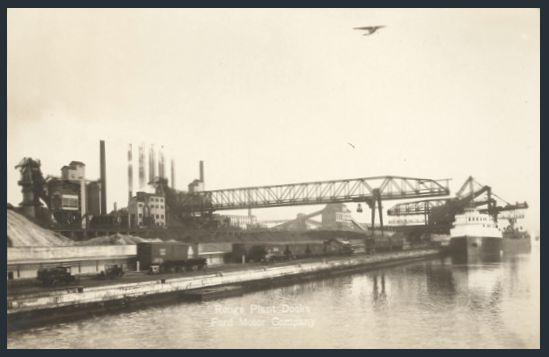 of 7 diff b/w real photo postcards circa 1930's-40's depicting scenes of the FORD MOTOR Co. PLANTS & BUILDINGS in Detroit Michigan. Each with printed write-up on the reverse. VF (7) (Image)