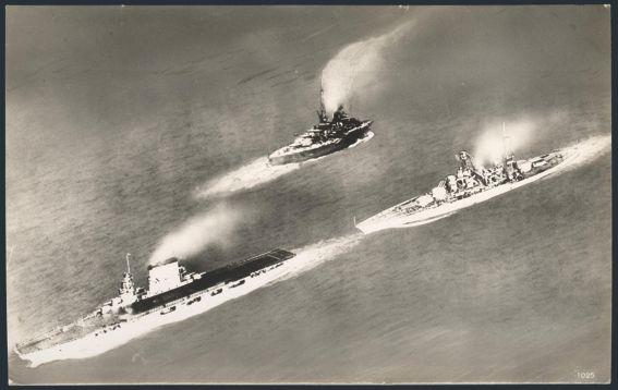 photo postcard with aerial view of US warships USS Saratoga, New Mexico & Tennessee. All survived WWII action. VF (Image)