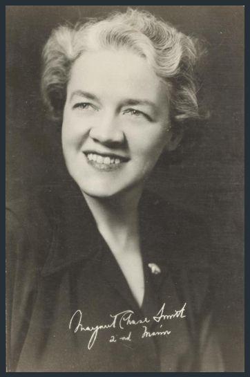 postcard circa 1950's depicting American politician MARGARET CHASE SMITH with her printed signature. She was the first woman to serve in both houses - in Congress & later as a Senator. VF (Image)