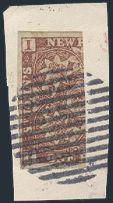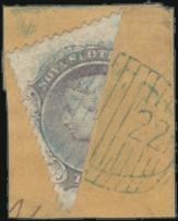 4509 9b image9b, Diagonal BISECT tied on piece by neat blue numeral '22' grid cancel. F. We believe this is a fake bisect. Interesting reference item (Cat $5,000 as a genuine cover) (Image) Estimate 125.00+ $Cdn