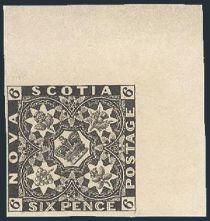 4503 4P image4P, Six Pence corner margin Plate Proof in black on thin card. VF (Image) Cat 400.00+