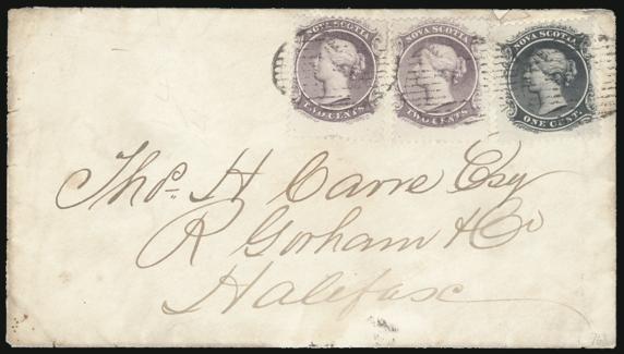 4506 8, 9 image8, 9 (2), Neatly tied by oval grid cancels on cover 23 March 1863 to Halifax. F, slight soiling. A nice multi-franked cover (Image) Estimate 200.00+ $Cdn