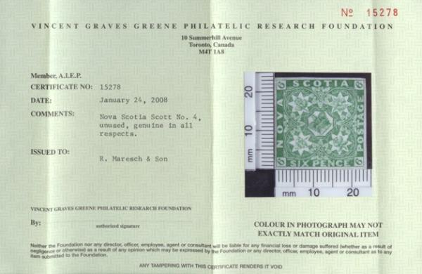 4501 4 image4, Scarce unused Six Pence with four margins, fresh rich colour, VF, NG. Has 2008 Greene Foundation Certificate (Image) (View Certificate)