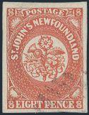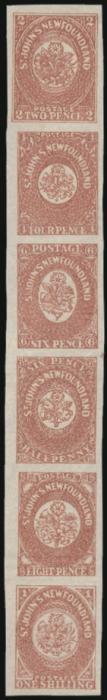 4549 20 20, Specialized collection of 8 used Six Pence imperfs. Has various cancels, shades incl rose, pale rose, deep rose; thick paper; dots in various positions; etc. Four are VF, four are VG-F. A nice lot for the specialist Estimate 225.00+ $Cdn