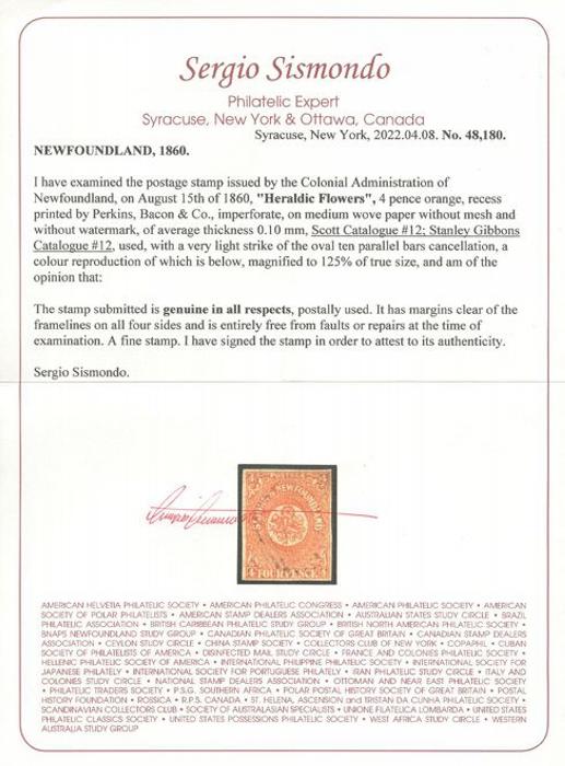 4539 12 image12, Four Pence Orange, four full to large margins, attractive colour, unusually light cancels. VF. Has been signed by Sismondo & with 2002 Sismondo Certificate (Image) (View Certificate)