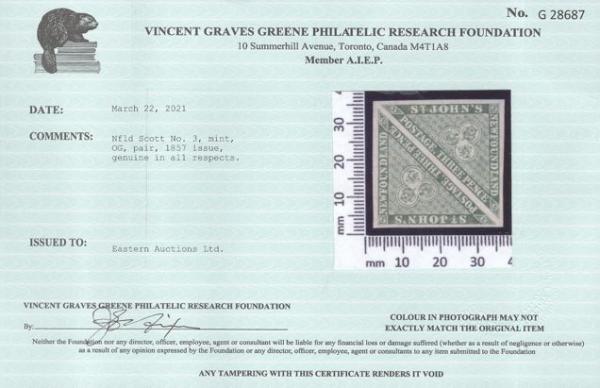 4526 3 image3, A rarely offered mint pair of the first issue showing the distinctive colour and paper. XF, OG. Has 2021 Greene Foundation Certificate (Image) (View Certificate)