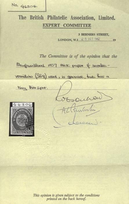 4533 9 image9, Scarce One Shilling Scarlet Vermilion, excellent rich colour, four large margins, neat cancel. XF, one tiny thin does not detract from this beautiful stamp. Has 1962 BPA Certificate (Image) (View Certificate)