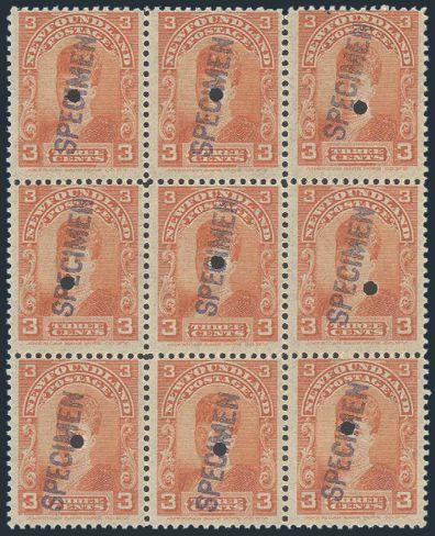 of 9 with "SPECIMEN" overprints and printer's punches. Fresh, F, NH, some separation. A pretty item (Image)