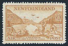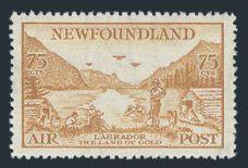 Labrador 75¢ Airmail perforated 14.3 with top of watermark design (as seen from the back) facing left instead of right. Fresh, VF, NH. Scarce variety (Image)