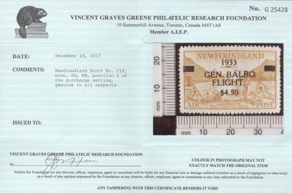 $4.50 Balbo, nicely centered, fresh, VF, NH. Has 2017 Greene Foundation Certificate (Image) (View Certificate)