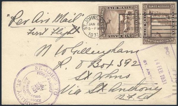 Tied on cach FFC St. John's to St. Anthony 29 Jan 1931. VF (Image)