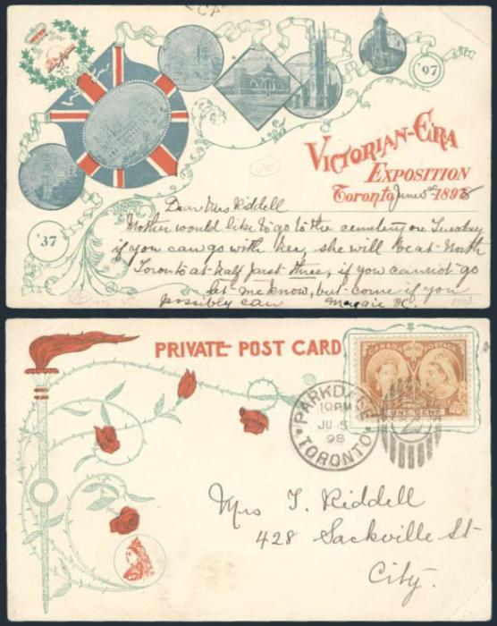 4795 51 image51, Tied by VF Parkdale Toronto "2" duplex 5 Ju, 1898 on multi-colour illustrated Private Postcard for the 1898 VICTORIAN EXPOSITION IN TORONTO. VF, couple corner creases (Image) Estimate 150.00+ $Cdn