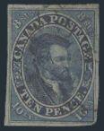 10 Pence Cartier, almost four margins, sharp impression, excellent colour. F+, NG. Has 2018 Greene Foundation Certificate. A VERY SCARCE CLASSIC MINT STAMP (Image)