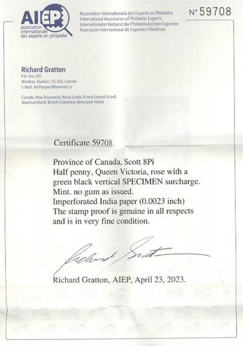 Proof on India Paper, full margins, VF. Has 2023 Gratton Certificate (Image) (View