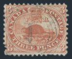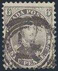 Six Pence perforated, Montreal 4-Ring "21" cancel, F-VF, couple tiny creases do not detract from this nice looking stamp (Image)