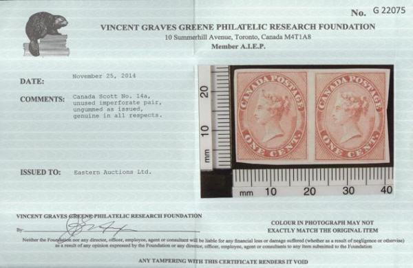 IMPERFORATE PAIR, bright fresh colour, four margins, VF. A VERY SCARCE ITEM WITH ONLY 50 PAIRS KNOWN. Has 2014 Greene Foundation Certificate . Ex Poole (Image) (View Certificate)