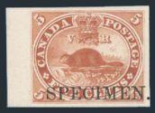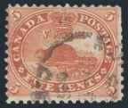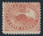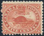 5¢ Beaver with the "LOW MOON" variety (Position 34). A nice clear example of this constant plate variety. F, NG, slight crease (Image)
