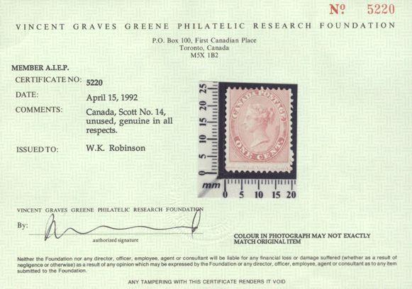unused example with full PLATE IMPRINT at bottom. F, NG. Has 1992 Greene Foundation Certificate (Image) (View Certificate)