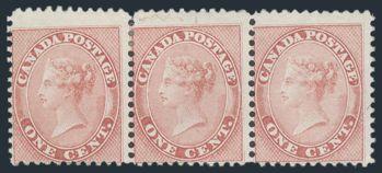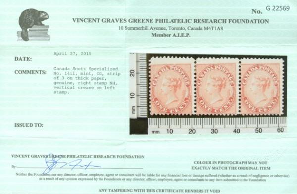 strip of 3 on VERY THICK PAPER. F, OG, right stamp is NH, left stamp slight crease. Has 2015 Greene Foundation Certificate. VERY SCARCE ITEM. Ex Dale (Image) (View Certificate)