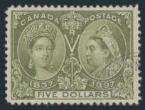 5351 65 image65, Five Dollalr Jubilee, nicely centered, deep rich colour, lightly cancelled, VF (Image) Cat 1,600.00