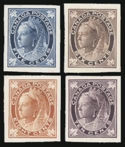 5362 66P-73P image66P-73P, Complete imperf set of QV Leaf Plate Proof singles, on card, in colours of issues. All with large margins. XF (Image) Cat 2,000.00