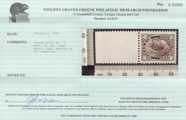 single JUMBO, beautifully centered, fresh rich colour, XF, NH. Has 2025 Greene Foundation Certificate (Image) (View Certificate)