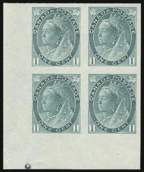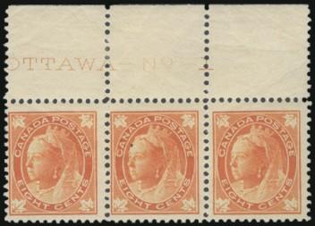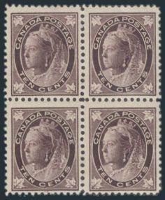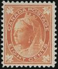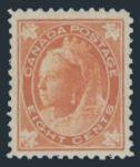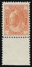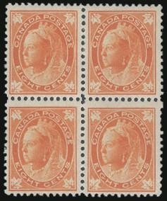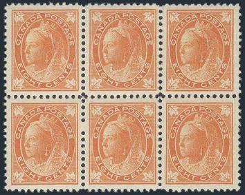 of 6 of the QV 8¢ Leaf, pristine fresh colour, nicely centered. VF, NH. A GORGEOUS MULTIPLE (Image)