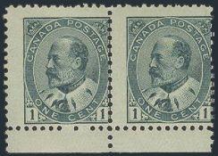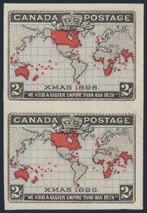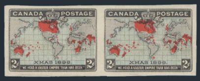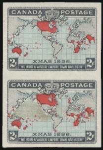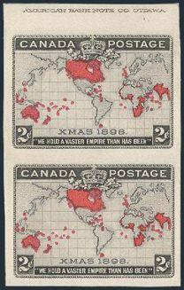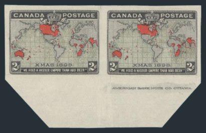 margin IMPERFORATE PAIR on card. Has full AMERICAN BANK NOTE Co. OTTAWA imprint. Large margins. VF (Image)