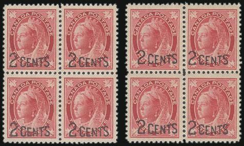 nice mint blocks, one showing NARROW SPACING variety. VF, NH (Image)
