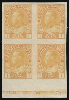 margin imperf block with partial TYPE B LATHEWORK. A beautiful fresh block. VF, lower stamps are NH, couple light natural gum bends. VERY RARE ITEM. Ex McKay (Image)