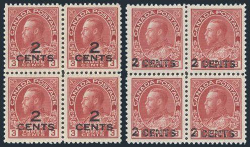 Complete set of Surcharge Admiral blocks with perfect centering, fresh rich colour, XF, NH. AN OUTSTANDING SET OF BLOCKS (Image)