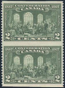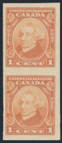 Complete set of Confederation IMPERFORATE PAIRS, bright fresh colours, large margins, VF, NH (Image)