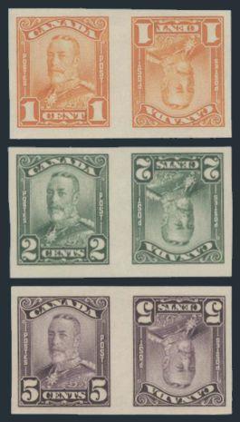 150cvi, 153cvi, Complete mint set of 3 diff imperforate TETE BECHE PAIRS with narrow (4.5 mm) gutter margins. VF, LH. A BEAUTIFUL FRESH SET (Image)
