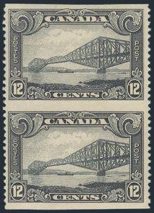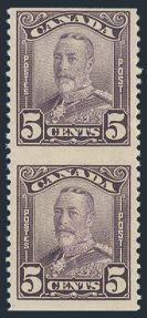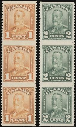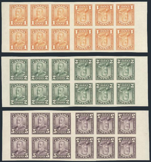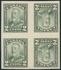 153c, Complete set of 3 diff KGV Scroll matching IMPERFORATE TETE BECHE PANES (one inverted in each) with 4.5 mm vert gutter between panes. VF, 1¢ is NH, others are LH. VERY SCARCE (Image)