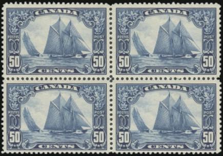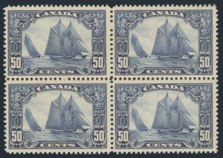Gorgeous 50¢ Bluenose block with radiant fresh colour & beautiful centering. VF, NH (Image)