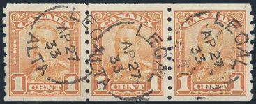 5629 160 image160, Coil strip of 3 with neat Legal, Alta 27 Apr 1933 split-ring cancels. VF (Image) Cat 90.00+
