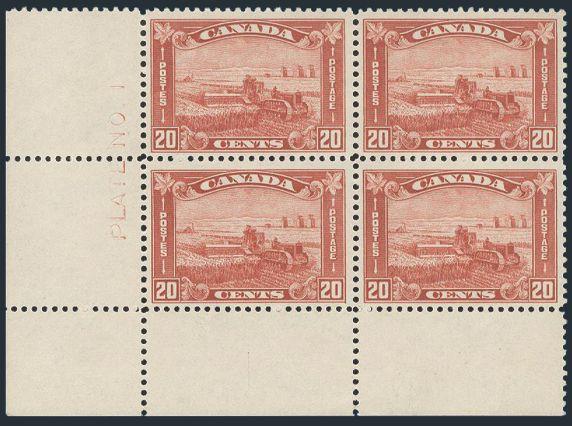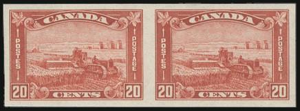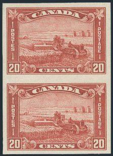 5647 175a image175a, Imperf pair of the 20¢ Harvester. Large margins all around, VF, NH, glazed gum. Only 75 pairs exist (Image) Cat 2,500.00