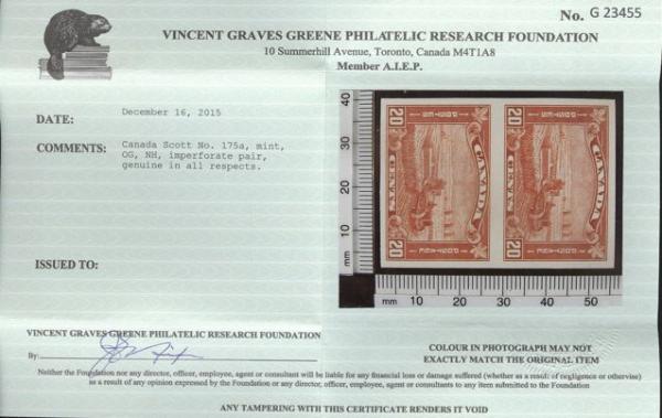 5648 175a image175a, Imperforate Pair, large margins, pristine fresh, VF, NH. Only 75 pairs exist. Has 2015 Greene Foundation Certificate (Image) (View Certificate)