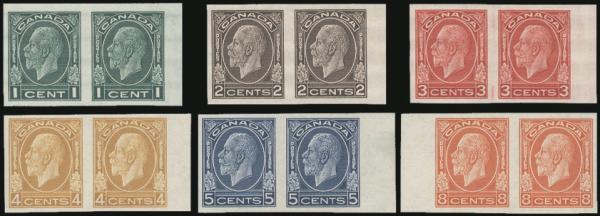5682 195c-200a image195c-200a, Lovely set of KGV Medallion marginal IMPERF PAIRS from 1¢-8¢. Fresh, VF, NH. Only 150 pairs of each exist (Image) Cat 4,200.00