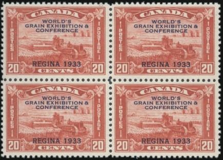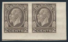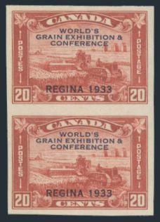 5699 203a image203a, Imperforate Pair of the 20¢ Grain, excellent margins, crisp colour, VF, NH, one tiny gum wrinkle. Only 75 pairs exist (Image) Cat 1,600.00