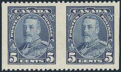 227, Vertical Pair with roller cancel having spelling error "KINDARDINE" Ont on one stamp, & the normal "KINCARDINE" on the other. VF