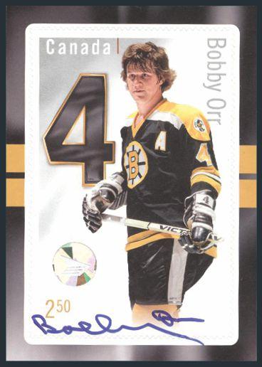 Autographed BOBBY ORR Hockey Stamp Card. VF, NH (Image)