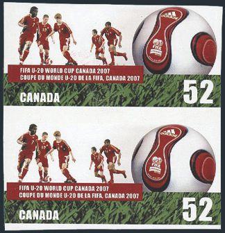 Scarce 52¢ FIFA World Cup Soccer IMPERFORATE PAIR. Pristine condition, XF, NH (Image)